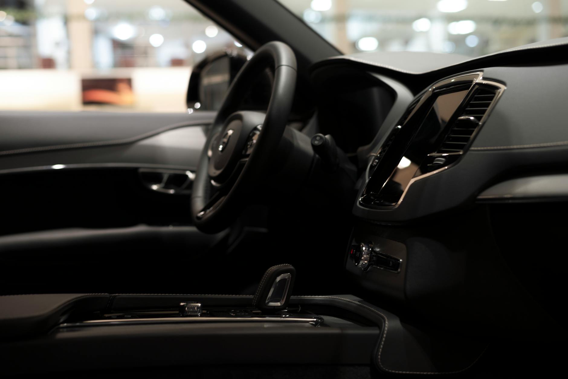 Luksusowe wnętrze samochodu z nowoczesnym panelem i wyświetlaczami